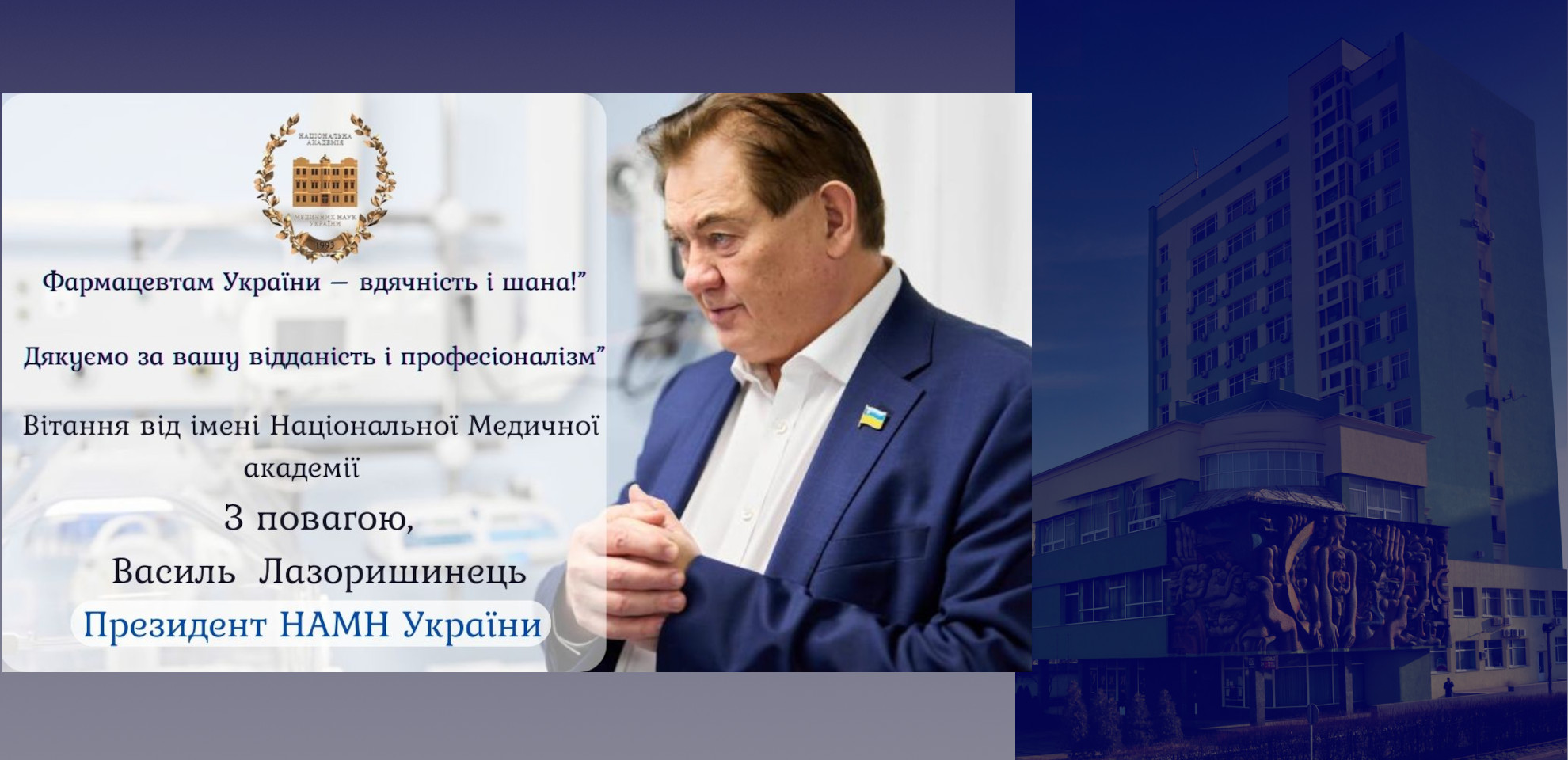 Greetings from Vasyl LAZORYSHYNETS, President of the National Academy of Medical Sciences of Ukraine, on Medical Workers' Day