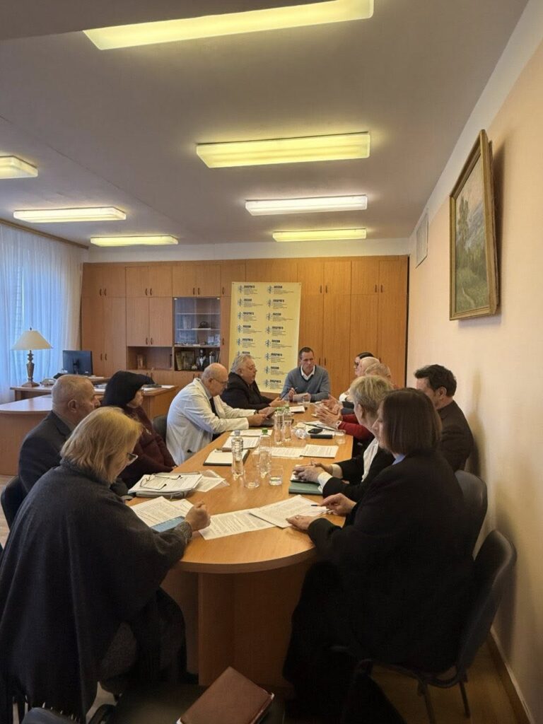 The meeting was chaired by the acting Director General of the State Institution «National Research Center for Radiation Medicine of National Academy of Medical Sciences of Ukraine,» V.A. ZHOVNIR, with the participation of the heads of leading institutions of the National Academy of Medical Sciences of Ukraine: Academician M.D. TRONKO, Academician Y.G. ANTYPKIN, Professor Igor SHKROBANETS, Doctor of Medical Sciences N.E. GORBAN, as well as representatives of the State Institution «National Research Center for Radiation Medicine of National Academy of Medical Sciences of Ukraine» – Corresponding Member of the NAMS of Ukraine V.O. SUSHKO, Academician D.A. BAZYKA, L.O. LIASHENKO, Professor L.I. SHVAYKO, L.A. YANOVICH, N.O. KOROL, and Advisor to the President of the NAMS of Ukraine G.B. GOLOBOKOV.