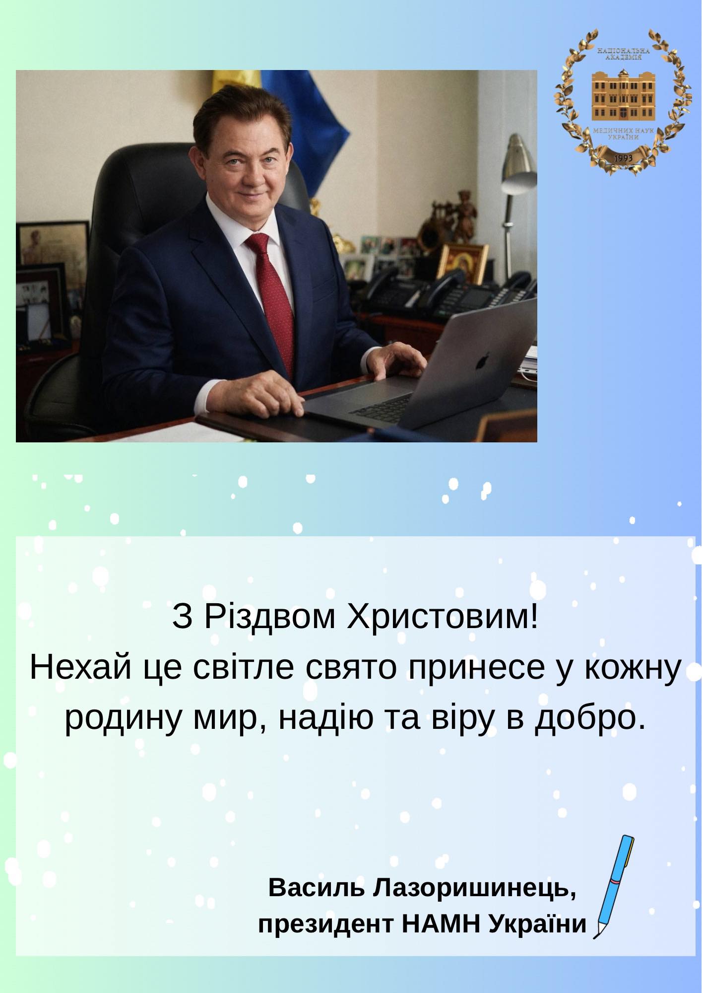 Christmas greetings from Vasyl Lazoryshynets, President of the National Academy of Medical Sciences of Ukraine