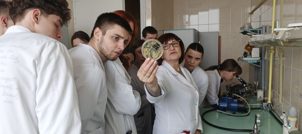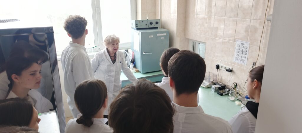 The students were told about the main areas of the laboratory’s work, including the specifics of storing dry culture media, their components, sterilization indicators, and the processes for preparing culture media. The tour concluded with a visit to the museum, where test strains of microorganisms are stored.