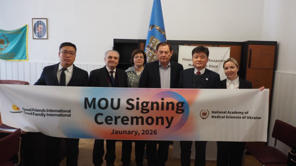 🤝The document was signed by the President of the National Academy of Medical Sciences of Ukraine, Academician Vasyl Lazoryshynets, and the CEO and Chairman of the Board of Good Friends International, Dr. Jimmy Kiwon Yi.