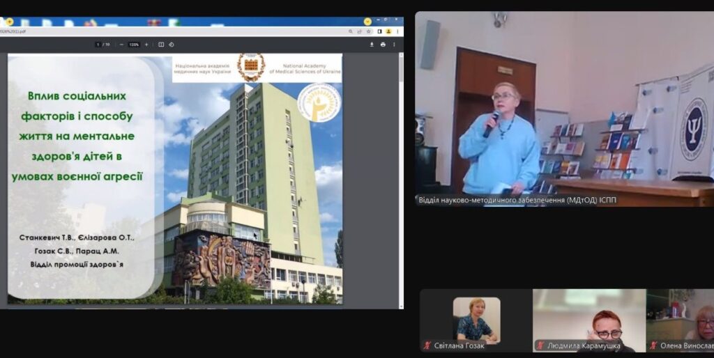 Staff members of the State Institution «Marzieiev Institute for Public Health of the National Academy of Medical Sciences of Ukraine» presented papers at the conference titled “Public Health and Interdisciplinary Approaches to Psychological Support for the Population,” “The Impact of Social Factors and Lifestyle on Children’s Mental Health in Conditions of Military Aggression,” “The Use of Information Technology to Study the Health Status of the Population under Martial Law,” and “Prospects for Ukrainian Genomic Research on the Severe Mental Consequences of War.”