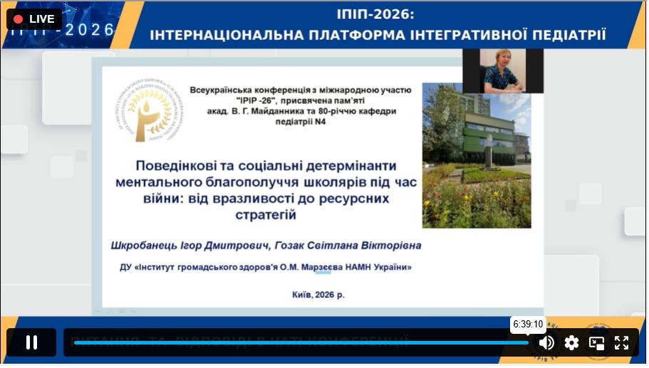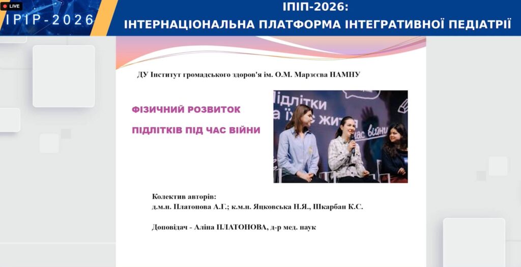 Researchers from the State Institution «Marzieiev Institute for Public Health of the National Academy of Medical Sciences of Ukraine» participated and presented reports at the All-Ukrainian Scientific and Practical Conference with International Participation, held at the Bogomolets National Medical University on March 24–25 of this year on the topic: «IPIP-2026: International Platform for Integrative Pediatrics,» dedicated to the memory of the outstanding Ukrainian pediatrician and academician of the National Academy of Medical Sciences of Ukraine, Vitalii Hryhorovych Maidannyk, and the 80th anniversary of the Department of Pediatrics No. 4 at Bogomolets National Medical University.