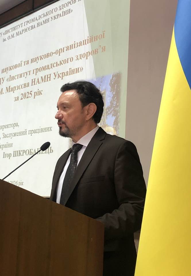 During the meeting, Director of a State Institution «Marzieiev Institute for Public Health of the National Academy of Medical Sciences of Ukraine,» Doctor of Medical Sciences, Professor, Honored Health Care Worker of Ukraine Igor SHKROBANETS, presented the Report on the scientific and organizational activities of the Institution for 2025. The report was unanimously accepted and approved.