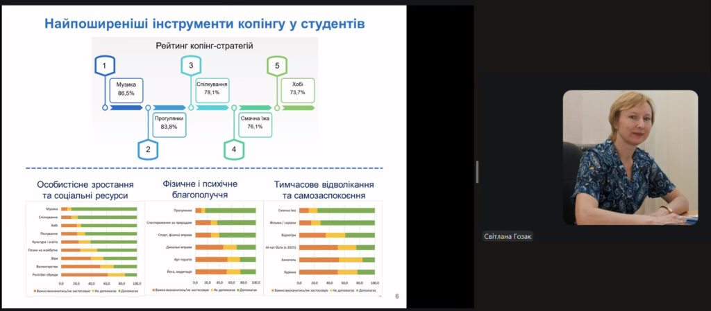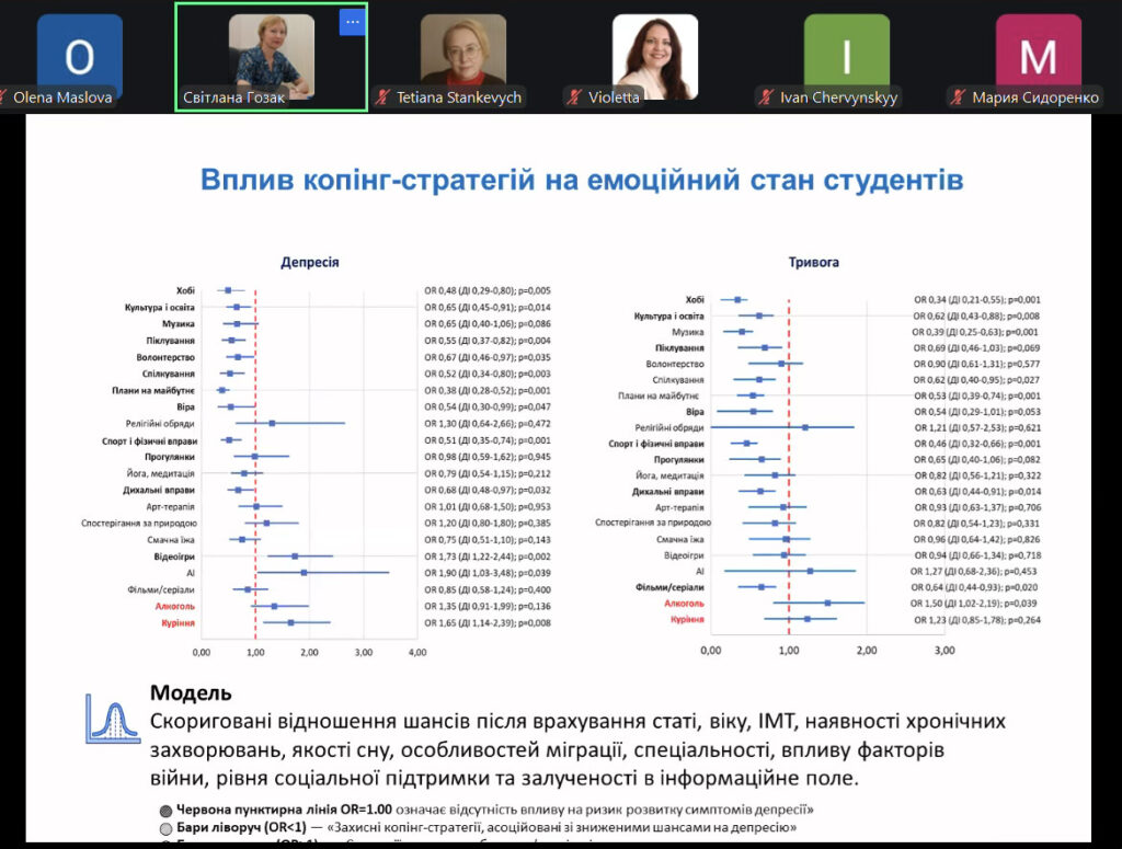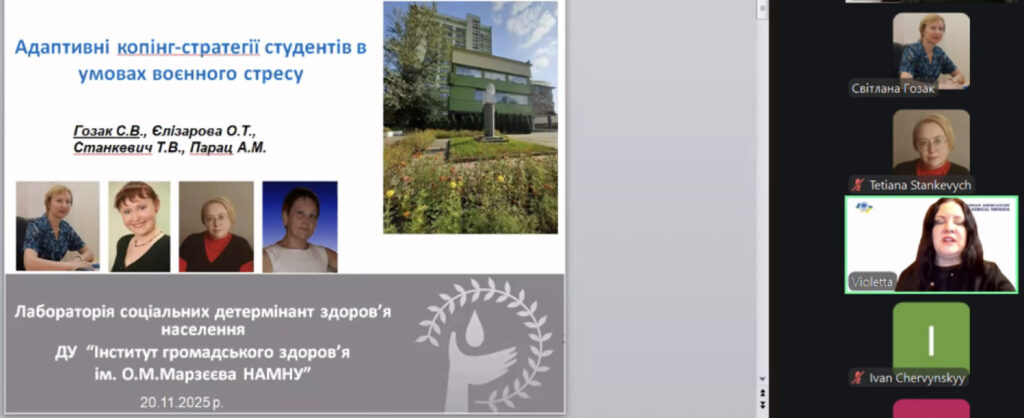 At the invitation of the organizers, researchers of the Laboratory of the Social Determinants of Population Health of our State Institution «Marzieiev Institute for Public Health of the National Academy of Medical Sciences of Ukraine» took part in this forum. At the plenary session on «Public Health,» the Head of the Laboratory, Doctor of Medical Sciences Svitlana HOZAK, presented a report entitled «Adaptive Coping Strategies of Students in Conditions of War Stress.» In her report, she focused on the tools used by students to cope with stress during wartime, which strategies have proven to be most effective, which are gradually losing their significance, and what this means for mental health support programs during wartime, as well as why even the most effective strategies do not work for everyone. Svitlana HOZAK also emphasized that during wartime, physical activity, walks, sports, as well as music, communication, and caring for others remain powerful tools for supporting resilience and maintaining the health of young people. The authors plan to publish the materials of this study.