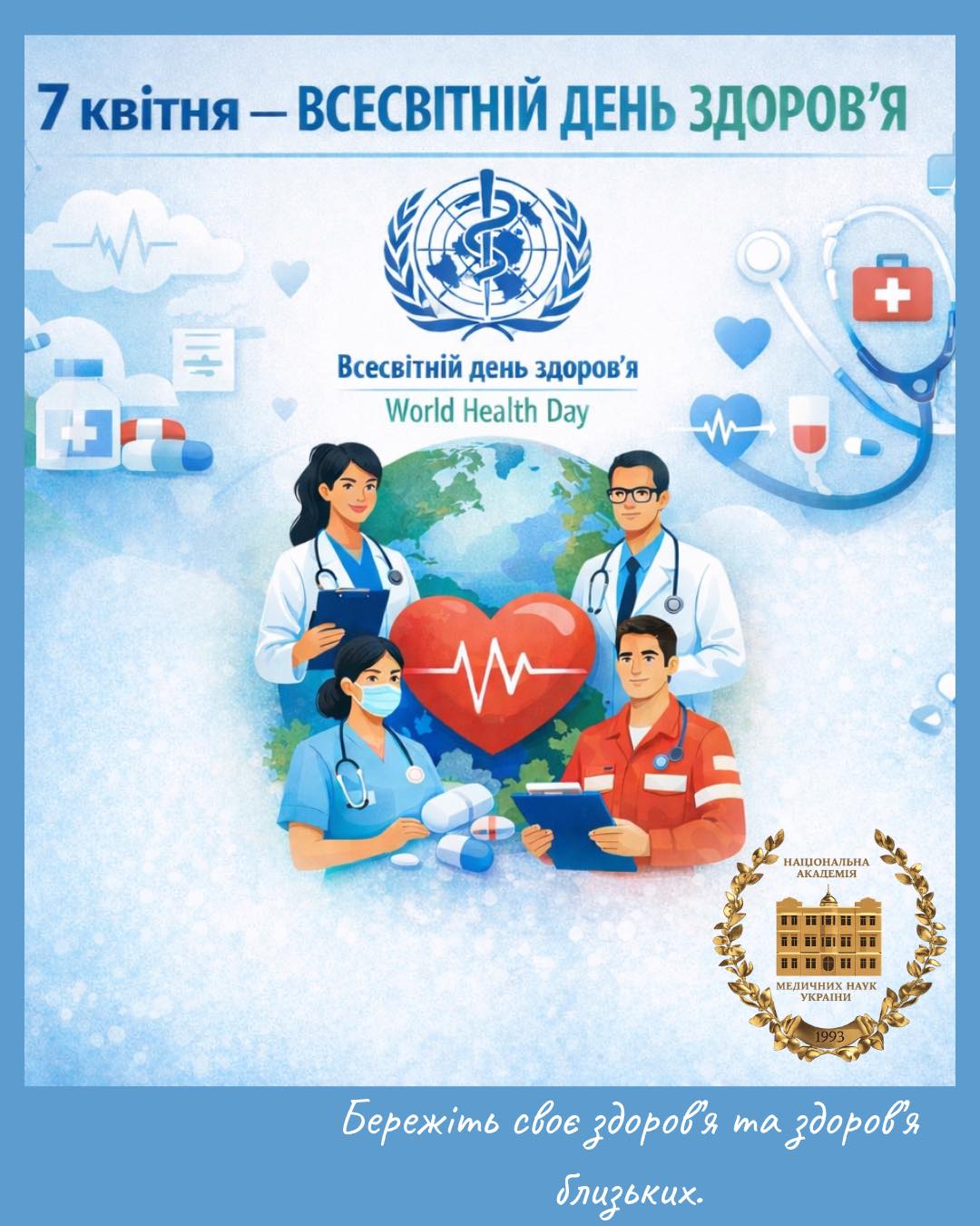 🌍7 квітня – Всесвітній день здоров’я. Привітання та поради від НАМНУ