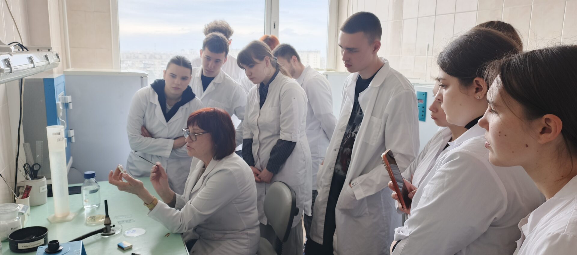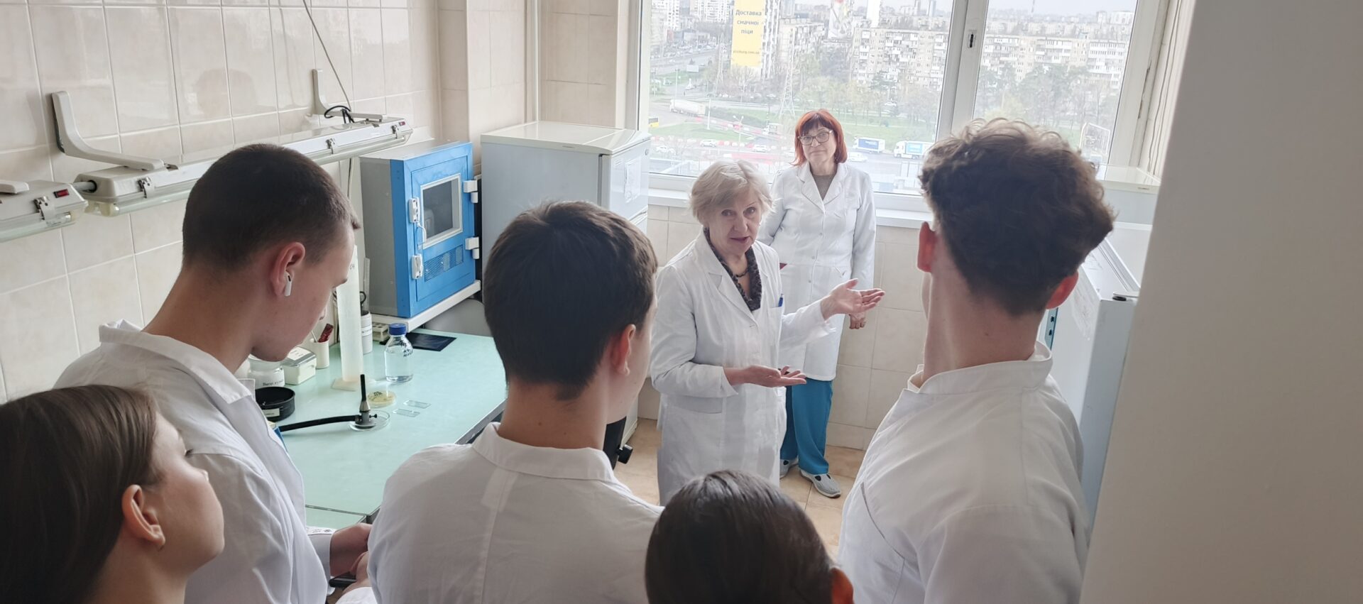 13 квітня 2026 року студенти ПВНЗ «Київський медичний університет» в рамках вивчення освітнього компонента «Мікробіологія, вірусологія та імунологія» відвідали Лабораторію санітарної мікробіології та дезінфектології з музеєм тест-штамів мікроорганізмів ДУ «ІГЗ НАМНУ».
