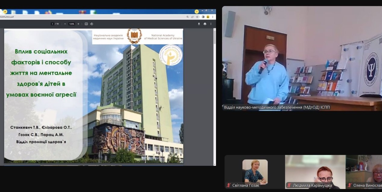 Співробітники ДУ «Інститут громадського здоров’я ім. О.М. Марзєєва Національної академії медичних наук України» виступили на конференції з доповідями «Громадське здоров’я та міждисциплінарні підходи до психологічної підтримки населення», «Вплив соціальних факторів і способу життя на ментальне здоров’я дітей в умовах воєнної агресії», «Використання інформаційної технології дослідження стану здоров’я населення в умовах воєнного стану» та «Перспективи українських геномних досліджень важких ментальних наслідків війни».