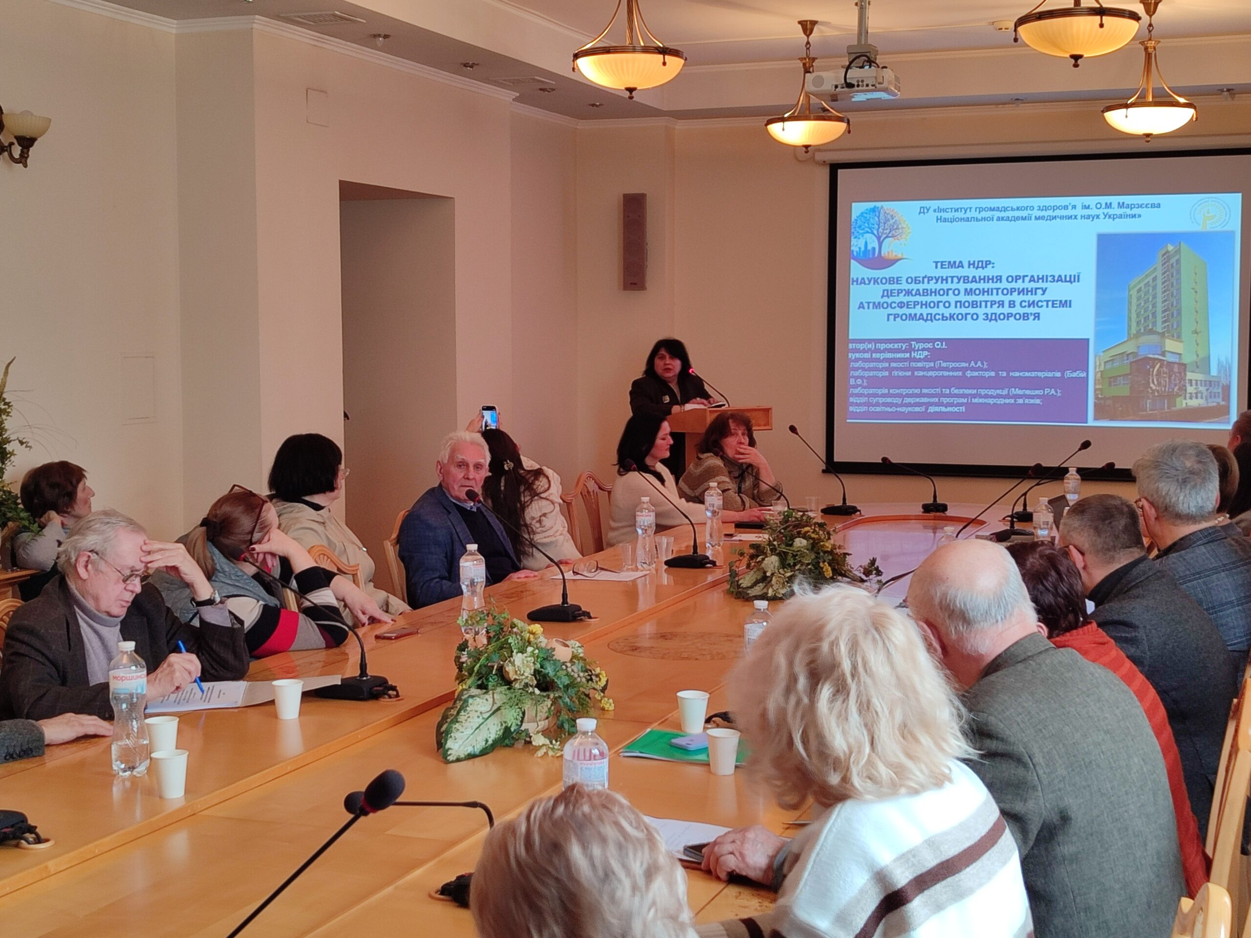 – д.б. наук, с.н.с., зав. лабораторії якості повітря Петросян А.А., яка доповіла про проєкт прикладної науково-дослідної роботи за темою «НАУКОВЕ ОБҐРУНТУВАННЯ ОРГАНІЗАЦІЇ ДЕРЖАВНОГО МОНІТОРИНГУ АТМОСФЕРНОГО ПОВІТРЯ В СИСТЕМІ ГРОМАДСЬКОГО ЗДОРОВ’Я» (3 роки виконання). Мета проєкту: наукове обґрунтування інтегрованої ризик-орієнтованої моделі організації державного моніторингу атмосферного повітря в системі громадського здоров’я України з використанням інноваційних підходів та стандартів Європейського Союзу. Петросян А.А. докладно висвітлила актуальність, етапи виконання запланованої НДР, а також очікувані результати та форми впровадження проєкту. Заслухавши матеріали щодо оцінки проєкту та врахувавши актуальність теми, наукову новизну та практичну значущість, позитивні відгуки на проєкт НДР, після обговорення та відкритого голосування одноголосно ухвалили рішення: проєкт прикладної НДР «НАУКОВЕ ОБҐРУНТУВАННЯ ОРГАНІЗАЦІЇ ДЕРЖАВНОГО МОНІТОРИНГУ АТМОСФЕРНОГО ПОВІТРЯ В СИСТЕМІ ГРОМАДСЬКОГО ЗДОРОВ’Я» рекомендувати на конкурс проєктів науково-дослідних робіт Президії Національної академії медичних наук України з терміном виконання 2027-2029 рр.