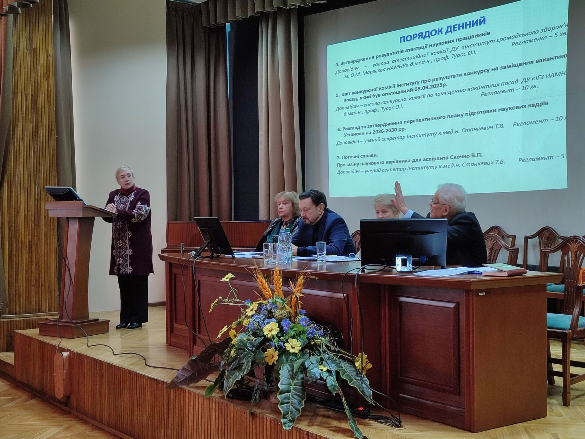 29 жовтня 2025 року відбулося чергове засідання Вченої ради ДУ «Інститут громадського здоров’я ім. О.М. Марзєєва НАМН України»
