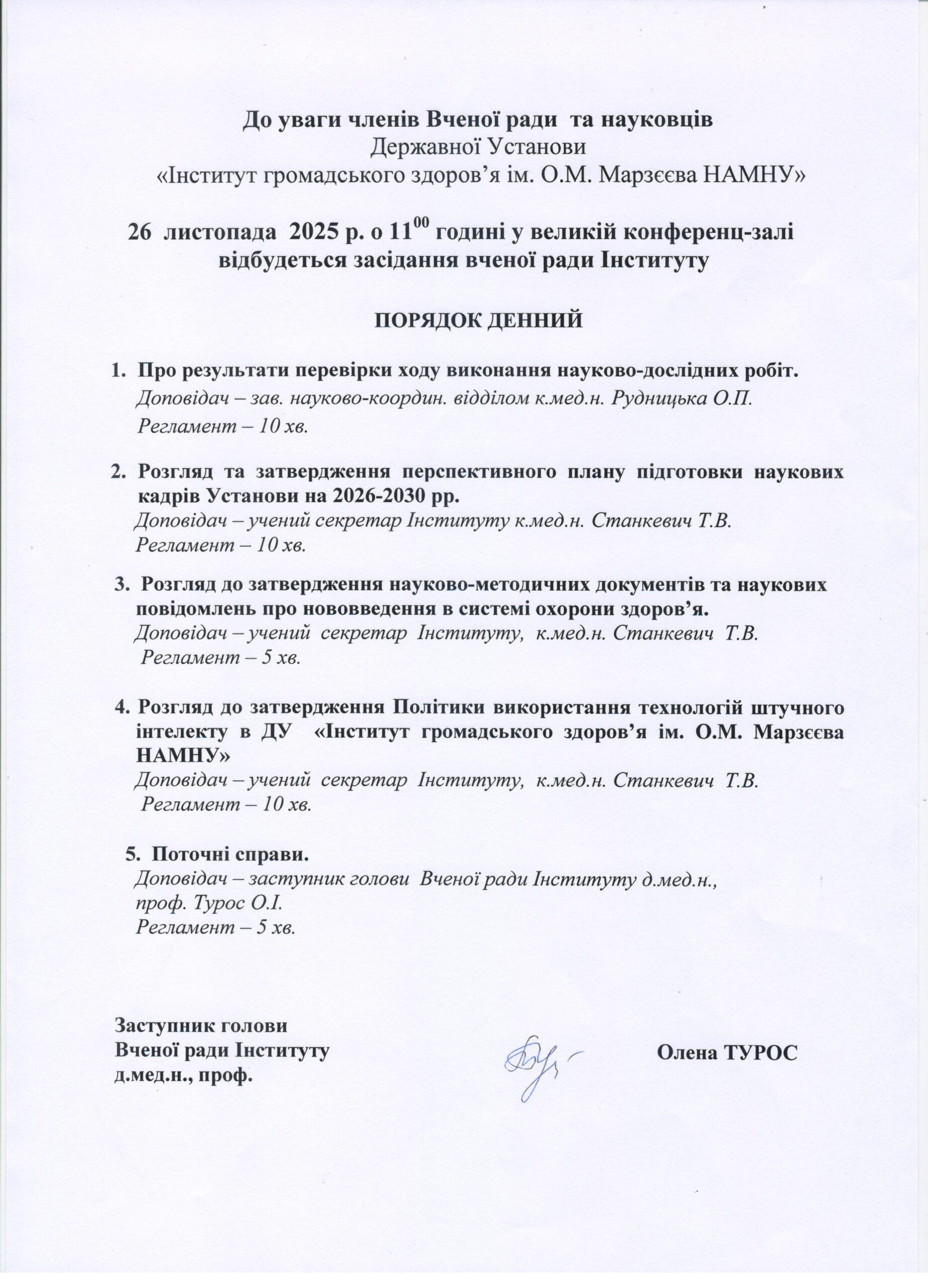 Засідання Вченої ради Інституту 26 листопада 2025 р.